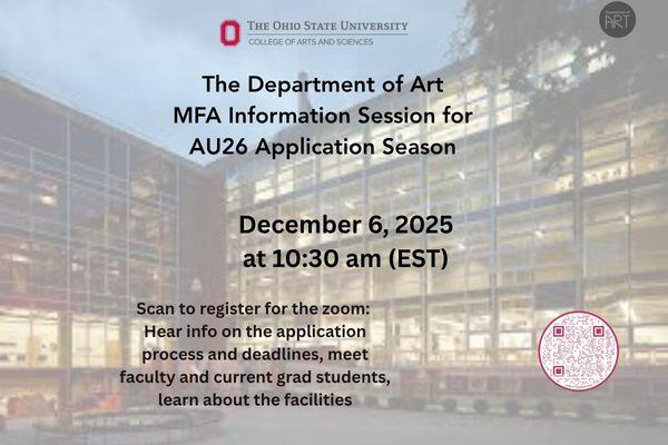 Join faculty, staff and current students to discuss the Graduate MFA program in the Department of Art. Learn about the application process and the facilities. Find out how your practice fits! Join us to find out more!